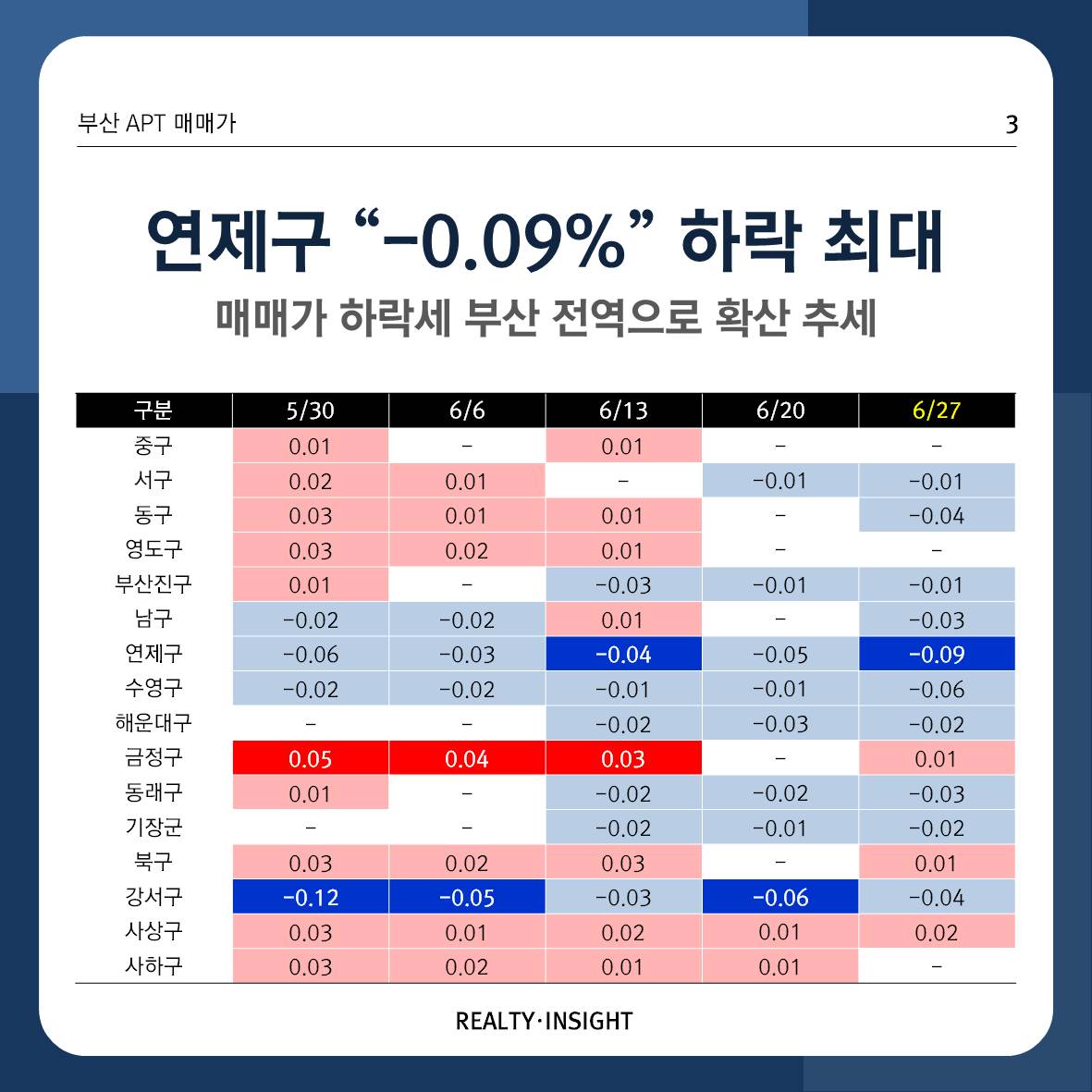 2022년 7월 1일 부산부동산 주간동향입니다.
